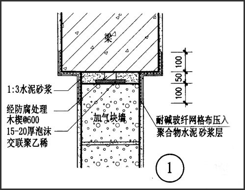 加氣混凝土砌塊設備網看圖來說明不同材料交界處構造和防裂處理方法
