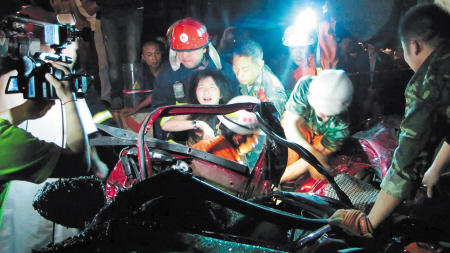 隨后,救援隊伍決定用兩臺吊車同時起吊。凌晨2時30分,泵體終于被吊起,被壓的小車上方出現了縫隙,現場群眾和消防官兵一起將小轎車拖了出來。隨即,救援人員實施了車頂整體切割,凌晨3時30分后,后排女乘客被救出。