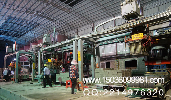 9.碼磚采用全自動的碼磚機,將出磚皮帶上的磚坯直接碼垛到窯車上,可以實現十字交叉碼垛,避免窯車行走過程中倒塌現象的發生。該碼磚設備能耗也比較低,僅僅需要10KW。