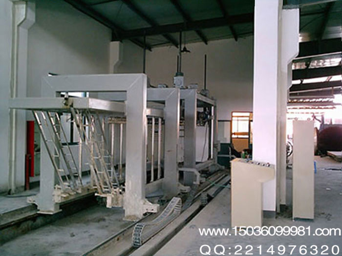 切割機工作原理: 翻轉吊具把模具帶坯體一起空中翻轉90度置切割小車上,脫模把坯體連同側板留在切割小車上,切割小車由電機作動力行走,通過縱切裝置完成縱向切割、銑槽、水平切割;切割小車繼續行走至橫切裝置中央位置停止后,橫切裝置啟動,橫切架自上而下垂直下切完成橫向切割;切割小車再行走至編組吊具處由編組吊具將坯體(連側板)吊至蒸養小車上,切割小車返回原始位置進行下一個切割循環。 切割機主要特點: ⑴、 機型結構精簡實用,便于安裝維修; ⑵、 坯體側立放置使坯體寬度為600mm,高度為1200mm,切割鋼絲短,不易拉斷,不易飄移,切割精度高; ⑶、 縱向切割裝置固定,切割小車行走完成縱向切割,切割時間短。橫切裝置采用鋼絲水平下切,縮短切割鋼絲長度,保證切割精度; ⑷、 坯體側立后可縱向切割時完成銑槽,不需另配槽口加工設備; ⑸、 本機型對坯體作六面切割,制品質量不受模油及模具變形影響; ⑹、 本機型除生產砌塊外還可生產板材; ⑺、 機型切割過程(翻轉、縱切、橫切)分不同工位完成,各工位工作簡化,操作保養方便。 |